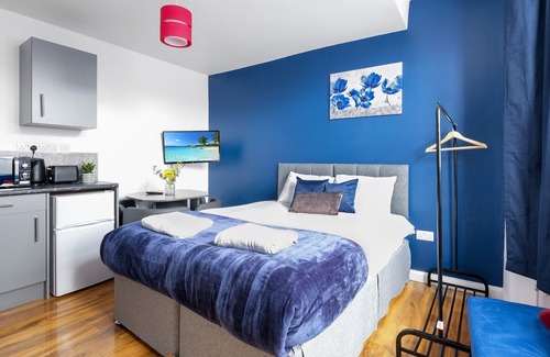 Great Value and well maintained and cozy Studio Apartments with all necessities for professional, contract workers or holiday makers looking to stay in a quiet suburban town with excellent transport links to the city and all major road. Property boasts outdoor space as well as utility services and high speed fibre internet. Each studio has its own en suite and kitchenette including fridge freezer and cooking facilities. Decorated to a high standard these studios are ideal for short stays.