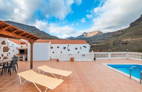 Finca Artemi is a lovely Canarian styled farmhouse in the mountains of Ayagaures. A cyclist delight only 20 minutes away from Maspalomas and all the hustle and bustle of the city. Breath-taking views over the Ayagaures valley; nested in serenity, peace and tranquillity; with only fresh air to breathe. This stunning farmhouse was re-built on the ruins of an ancient canarian prehistoric nomadic house. Over 10.000,00m2 of land and 500,00m2 of usable terrace area with a magnificent private crystal blue pool. The main house consists of a large living room, two bathrooms and two large bedrooms, comfortably sleeping up to five people.