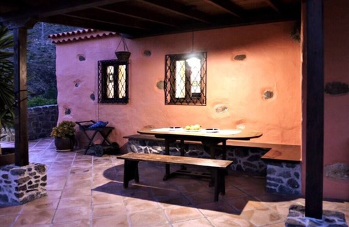 The accommodation is in two buildings, which are right next to each other. Both are built in traditional style. The main house consists of a large living room with a fully equipped kitchen, dining area and a rest area with an optional double bed and a master bedroom with a bathroom. The master bedroom has a comfortable double bed and a single bed. In front of the main house is a spacious terrace with a canary porch and a summer kitchen. From the terrace you have an amazing view into the whole valley.