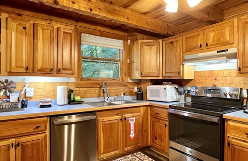 Stretch your vacation budget the easy way. The eat-in kitchen is well equipped and features all the items you d expect: standard coffeemaker, Keurig, toaster, blender, microwave and ice maker in the freezer. Enjoy breakfast on the front porch picnic table. Or pack a picnic for a midday hike. For dinner, pick up some charcoal and grill out at the cabin. The options for low-cost dining are plentiful at the cabin.