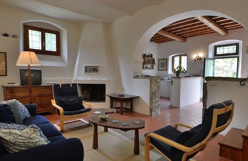 In Tuscan countryside 15 minutes from Florence very independent apartment finely restored and furnished on two levels. On the first floor there are 2 double bedrooms (1 double bed and two singles), 1 smaller room/studio with a sofa bed and 2 bathrooms, both with shower, one of which with bathtub. Living, dining, kitchen and a WC with washing/drying machine are on the ground floor that opens on an exclusive garden. The access from the main road as well as the car park are independent. The large shared pool,(meters 15.50 X 7.00 X 1.25 ), surrounded by vegetation and not visible from the house, open from May 15th to September 30th, is treated with natural salt. Personal transportation is advised. Private car service available with additional cost.