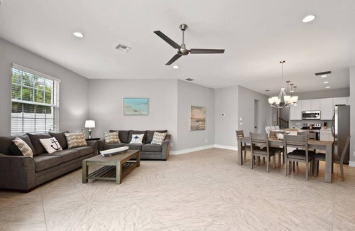 Come see the beach style décor in this new townhome. Boasting 3600 square feet of living quarters, equipped with smart TVs throughout and spacious enough to bring additional people and air mattresses, it makes for an excellent home away from home! You can spend your time bass fishing on the property's pond while you lounge and watch or the beach is only 1/2 mile away, along with restaurants a'plenty in walking distance. Book a stay with us at Fortebello to enjoy a great break from your norm!