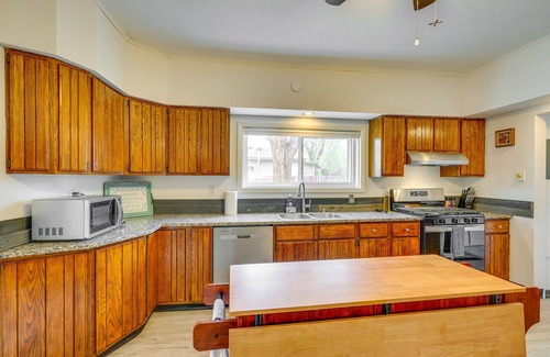 Book your next getaway at this vacation rental in Fountain, CO! Boasting all the modern comforts you'll need to feel at home, this 3-bedroom, 1.5-bath house makes an ideal launching pad for adventures with your loved ones. Here, you'll be located just a short drive from Colorado Springs' attractions, Manitou Springs' restaurants and shops, and local hotspots like Cheyenne Mountain Zoo. After exploring the area, retreat to the property to relax in the well-appointed living space!