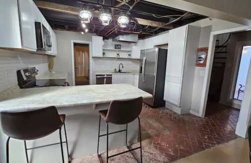 The whole group will be comfortable in this spacious modern industrial home. Spacious 4 bedroom with ensuite master, 2.5 bathrooms, family and dining rooms. Eat-in kitchen with all new stainless steel appliances and backsplash. Explore local activities from live music, views of the Mississippi River, great food and fun, minutes from Washington Street where you can park and walk to many attractions, Jackson State University football games a short drive away and more. Relax and stay for a while!