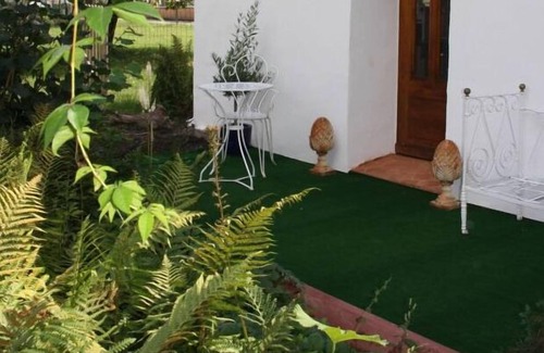 1) on the ground floor: - a fully equipped kitchen - a small lounge (with a bed for two people) - a terrace overlooking a garden - a spa, a walk-in shower and toilet.