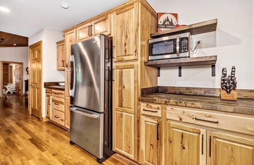 Interior Features Include: Rustic, private, log cabin surrounded by nature. Full kitchen equipped with all essentials, large dining room table (seats 8), comfortable living room, and plenty of space to spread out. The home offers a Keurig coffee maker and there are two TVs to stream your favorite entertainment.