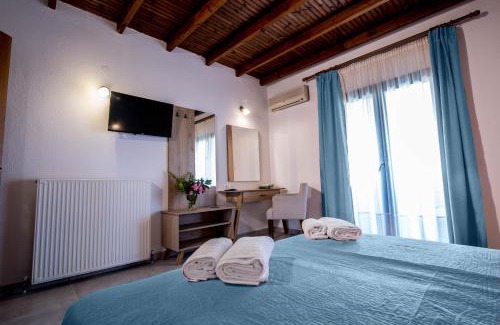 Surrounded by olive trees, fertile vineyards and greenery, Geranion Village is situated in Nikiti, in Sithonia, the second peninsula of Chalkidiki. It offers rooms with views of the Nikiti beach. Geranion Village offers 90 rooms, double and single, all complete with refrigerator, central heating/air conditioning, satellite TV and free Wi-Fi. The traditional complex consists from 5 independent buildings, an oval-shaped pool and a stone-built tower which hosts the main bar. The pool deck is equipped with free deck chairs and umbrellas and offers views of the Toroneos Gulf. The breakfast room has a 200-person capacity and serves a daily buffet of continental breakfast. During the summer season guests can dine outside, while in the winter the restaurant offers a fireplace. There is also a traditional tavern and a beach bar. Twice a week the hotel organizes Greek traditional nights with local dancers and live music. A play room with electronic games and a playground are available for children. Geranion Village is half a mile far from the nearest beach of the St George Village. The hotel bus runs free hourly service to the beach every day.