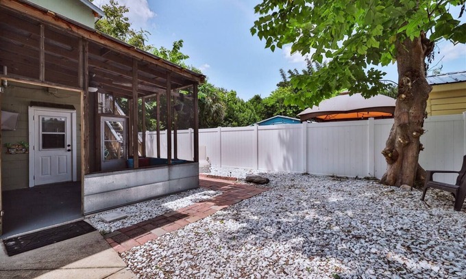 Keep it simple at this peaceful and centrally-located 1 bedroom beach hideaway. Enjoy the coffee bar and relax on the private back patio with large screen TV. Walking distance to Canal St by the river where you will find many local restaurants, shops, breweries, Just a two minute drive to Flagler Ave's night life and the beach. 20 minutes or less to Daytona Beach - What more could you ask for ?