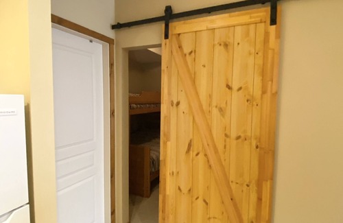 This cozy ski in / ski out condo in the Creekside complex is in a great location for a family or friend vacation in the mountains. There is a full bedroom with a queen bed and then a back alcove with a charming sliding barn door that has a single over double bunk bed configuration. The kitchen is fully equipped and ready for you to settle in. And after a busy day of skiing, biking or hiking, you can relax in a hot bath or head a few doors down to use the building's hot tub. There are two TV's, reliable WIFI and games available to play during your downtime. And when the sun is shining through the front window, there is no better place to curl up and read a book than on the couch.