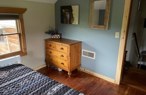 Rustic home built in 1920 with a log "great room" added in the 1980's from local trees. The great room was recently remodeled in 2023. Property will sleep 9 (2 queen beds, 1 full, a twin trundle and a roll a way), has 2 bathrooms and plenty of room to relax.