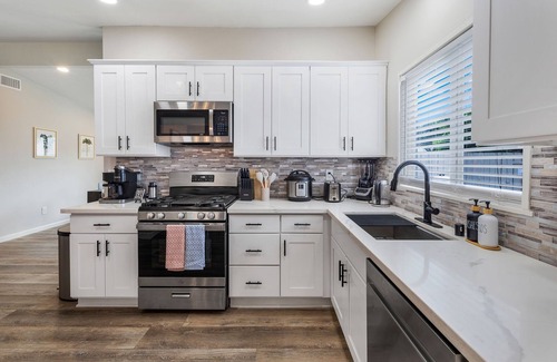 Welcome to Le Palmier (The Palm), the remodeled home is perfect for a girls or family trip to San Diego! Escape to a wonderful 4-bedroom house in La Mesa. This superb property features 1 king bed, 2 queen beds, and 2 set of full size bunk beds, perfect for families or groups of friends. Total capacity for 10 guests. We hope to provide a location for friends and family to come together and remember "what matters most is who you're with!" This house is centrally located to all major attractions, SeaWorld, La Jolla, and downtown. We are also partnered with local Bachelorette party planning companies to help organize your stay.