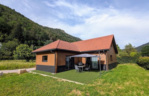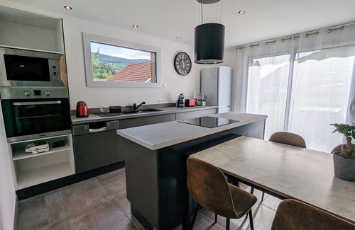 New house for 6 people with wellness area including spa and sauna, ideal for relaxing stays. Enjoy the peaceful terrace for your summer evenings and explore the hiking trails leaving directly from the gîte. Located in the town of Rochesson in the heart of the Vosges massif, this house is just 10 minutes from Gérardmer, renowned for its lake and its ski area, 25 minutes from Lake Xonrupt-Longemer and its water activities, and 15 minutes of La Bresse, famous for its ski slopes and lakes. House on 2 levels. It is composed on the ground floor: