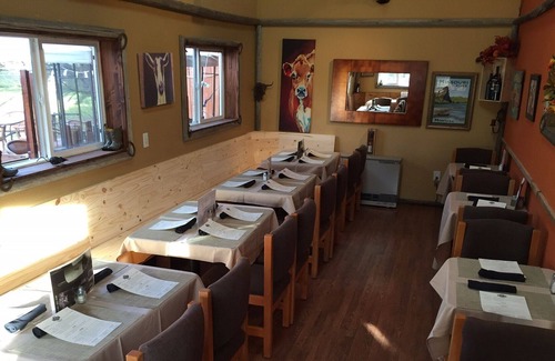 You won't forget this glamorous camping - Glamping! - experience! Come enjoy a brand new, durable, canvas frame tent furnished with a comfy double bed and another twin bed, a sink and a private deck to enjoy the sounds of Magpie Creek under our star-filled Big Sky. This is not completely roughing it -- you and four other guest units share a private "outdoor" bathroom with a potty and a shower (with instant hot water!). During your stay, be sure to get in a round of golf on our very own unique 9 hole par 3 course -- details available in the bar or on the mailbox next to the front door. And speaking of bar, be sure to join us for a drink or make reservations for dinner Thursday through Saturday at our fabulous fine-casual Highlander Bar and Grill. Enjoy a stroll around the ranch along Magpie Creek to see our Highlander cows, chickens, and the famous "Bacon" the pig.