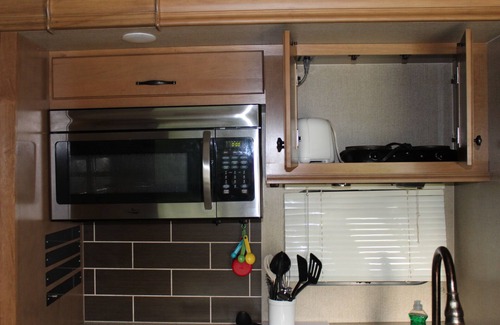 40 FT RV with 5 Slides, 1 Queen bed in the master Bedroom and a small narrow twin bed in the living room, 1 bathroom, fully equipped kitchen, living room with flat screen TV, exterior stone fire-rings, picnic tables and BBQ grill for your enjoyment when you're not busy exploring nearby parks, sampling local restaurants, or spending the day in Chattanooga or DeSoto State Park.