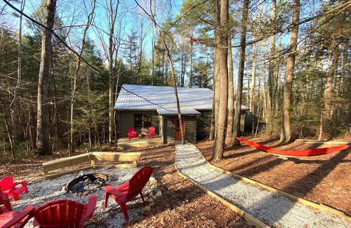 You will also discover a fire pit area, perfect for gathering around with family and friends...and ideal for s’mores and stargazing! Share stories, roast marshmallows, and create lasting memories under the starry night sky. The fire pit adds a touch of rustic charm and warmth to your outdoor experience. Our cabin also features a hammock just begging to be rested in!