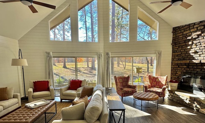 Get the most out of your next stay in Hot Springs Village when you book this amazing 3-bedroom, 2- bath, vacation rental! Perfect vacation rental for Golfers (right out your back door), Pickleball & Mini Golf Course (within walking distance), Lake DeSoto Beach (6 min.drive) and all outdoor enthusiasts. The property provides easy access to12 lakes, 9 golf courses, & the Ponce de Leon Center. Oaklawn Park & Casino is 17 miles from the home. Be sure to check out the live music, Bathhouse Row, and arts scene in downtown Hot Springs before heading back to relax in the home's spacious and comfortable indoor and outdoor spaces.