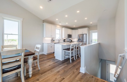 Spend sunny afternoons lounging by your private pool, or dine al fresco at the outdoor table with umbrella and gas grill setup—ideal for evening cookouts after a day on the sand. The fenced-in patio also features an outdoor shower. Guests traveling with pets will appreciate that Good Tide-ings is pet-friendly for up to two dogs, making it easy to bring your four-legged family members along for the adventure.
