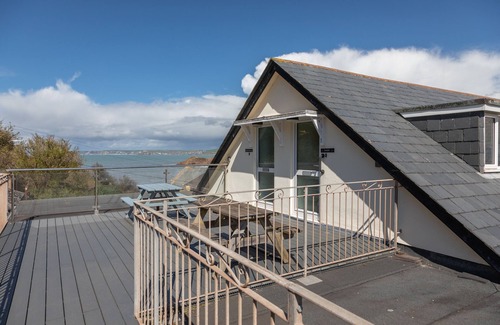 Amenities: Electric heating. Electric oven and ceramic hob, microwave, fridge/freezer, washing machine, dishwasher, radio. Smart TV, DVD player, WiFi, radio Hi-Fi in lounge. Fuel and power inc. in rent. Bed linen and towels inc. in rent. Allocated parking for 1 car. Communal rear garden with lawned area, decked terrace with furniture and barbecue, and decked terrace with furniture. One well-behaved dog welcome. Sorry, no smoking. Shop and beach 0.1 miles, pub 0.1 miles. Note: There are steps leading up to the property. Note: There are steps within the property. Note: The rear garden is not enclosed. Note: Children must be supervised on the terrace and in the communal garden. Note: Take care when the terrace is wet