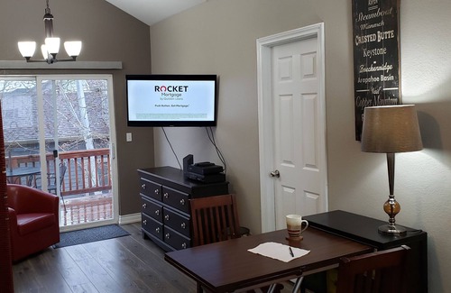 Completely remodeled and designed for longer term stays. The versatile layout has a sleeping area, living area, dining area plus a full size kitchen, full size bath, washer dryer, and 2 walk- in closets. You control your own utilities. What makes this Carriage House special is the quality finishes, top location, being unattached to other living units, and the great large deck with furniture to enjoy the outdoors plus your own private carport. All utilities, dedicated high-speed internet, cable TV make this your sanctuary to work or play from. Local hosts who take great pride in their property. See our identical Carriage house #2 with other availability # 1891904. Please note: While there is a shared neighborhood pool, recent Covid and HOA rules make it impractical to sign up for guests, unless they are going to be here for many months. If you will be staying that long, reach out to me ahead of time after you have booked and I will attempt to send pool waivers, etc to pre-arrange a pool pass, but it cannot be guaranteed.
