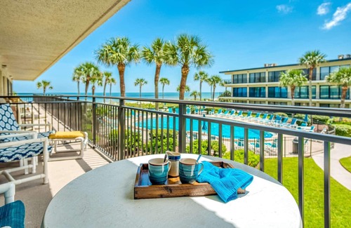 Relax with water views all day in "Grandma's Rest East" (Ocean House #206) on gorgeous Crescent Beach!! You are ensured the perfect family vacation in this oceanfront condo stocked with water toys, beach chairs, and indoor games and DVDs. Hang out with the whole family on the huge balcony or spend the day watching the kids splashing around in the surf or trying their hand on the putt-putt green. Cook up breakfast or dinner in the fully stocked kitchen,or grill out on the lawn. Enjoy movies on the multiple TVs. You will appreciate the comfortable living room seating and the amply-sized dining room table. The two bedrooms and two full bathrooms are outfitted with fresh linens for your rest and refreshment.