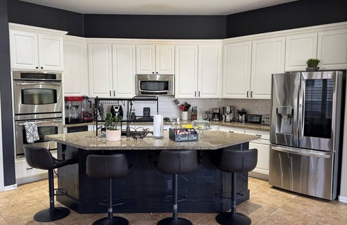 Escape to this marvelous 4-bedroom house in Mesa. With 1 king bed, 1 queen bed, and 2 full beds, guests will find comfort and space to unwind. The 3 bathrooms are stocked with essentials like a hairdryer and bathtub. AC, WiFi, heating, and a washing machine are just a few of the superb amenities available. Our place is equipped for both long or short stays to make your holiday one to remember.