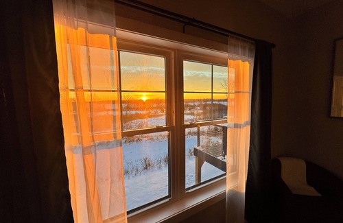 The Premier Shoreline House is one of our most recent additions, boasting breathtaking views of the Saint Louis River and gorgeous sunrises that will take your breath away each morning. This charming residence features a generously sized family room, designed to create a warm and inviting atmosphere for moments spent with family and friends. The heart of the home, the kitchen, is equipped to comfortably serve large gatherings, with seating available for up to 16 individuals. 12 guests can sit around the large dining room table, perfectly positioned next to a cozy fireplace that adds warmth and charm to your dining experience. Whether you're sharing meals or simply enjoying each other's company, this space is sure to create lasting memories.