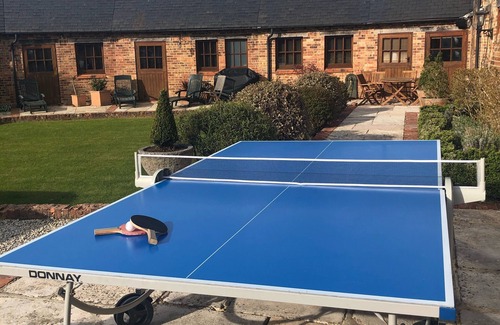 This is a 65ft open vaulted green oak barn, with open mezzanine floors either end of it, both with sleeping arrangements and one with its own en-suite. Downstairs is a stone floored, with underfloor heating, area divided into a dining area for entertaining, a mini-grand piano area, for the gifted, a full size pool table area, for the more competitively spirited and the relaxing seating area with soft leather oversized sofas and throws to put your feet up after a long walk either watching a film or simply enjoying time with friends in front of the fireplace.