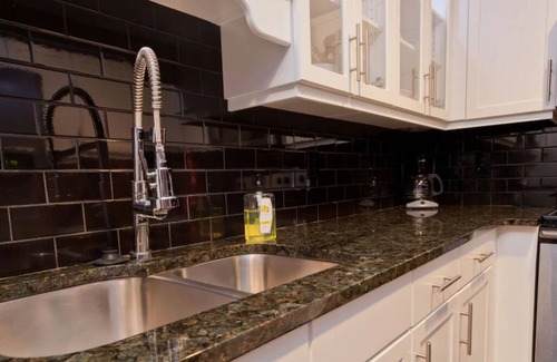 This 3 bedroom 2 bathroom unit features accommodations for up to 10 guests (four queen beds and a queen-sized air mattress), central air and heat, a full sized stackable washer and dryer, a small balcony, free cable television, free wireless internet access, wood burning fireplace, and plush furnishings. With upgraded counter tops, renovated kitchen and bathrooms, flat screen televisions mounted on the walls, and a fantastic stereo in the living room, every detail has been considered to make your stay a pleasant one.