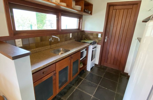 House of 3 bedrooms, one on the ground floor (suite) and two on the pav. higher. Direct access to the beach (100m) by Passarela do Encanto. Seafront - which ensures adequate ventilation and sunshine. Covered deck porch by lawn garden - Complimentary WIFI Internet, 32 "hd TV. Living with large glazed openings to the garden. Dining area integrated into the American kitchen - equipped with fridge, freezer, stove, microwave, coffee maker, sandwich maker, blender, glasses for water, wine, and other indispensable items.