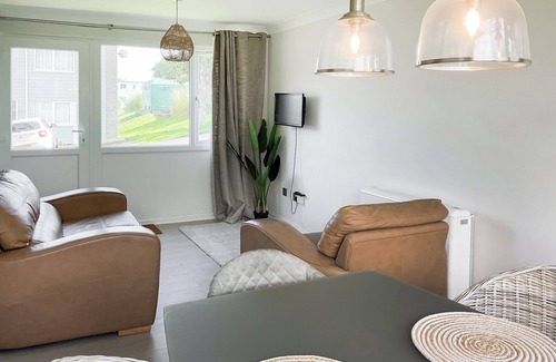 Shower Room: Cubicle Shower, Heated Towel Rail, Toilet. Electric central heating, electricity, bed linen, towels and Wi-Fi included. Front and rear garden with sitting out area and garden furniture. Private parking for 1 car. No smoking.. This charming holiday let at Trewent Park, Freshwater East, offers a comfortable and stylish retreat with open plan living space, combining kitchen, dining area, and lounge. The living room features a Smart TV for entertainment, creating a perfect space for relaxation. Upstairs, you’ll find a double bedroom at the front of the property and bedroom with a triple bunk (suitable for three guests), at the rear. The modern bathroom includes a large mains pressure shower, wash basin and toilet, adding to the property’s convenience and comfort. This well-equipped chalet provides a welcoming space for small families or groups seeking a peaceful getaway. Located within Freshwater Bay, Trewent Holiday Park is in rural seaside location within the Pembrokeshire Coast National Park and boasting distant sea views. There is an on-site restaurant and bar and it is only a short stroll to the beach, making this the perfect destination for your next holiday.