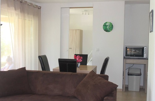 The comfortable and family apartment is designed to accommodate 6 people. The large terrace and the mountain view are an invitation to a pleasant stay under the Corsican sun. It is composed :