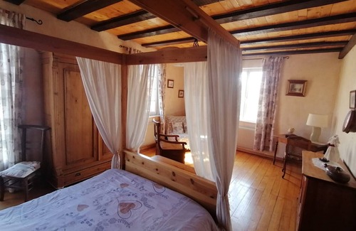 The guest room À L'ancienne Boulangerie - Épeautre in Elsenheim offers 45 m² and can accommodate up to 4 people. You will enjoy a comfortable bedroom and a bathroom with private toilet. A baby cot is available on request for your comfort. Private amenities include Wi-Fi, a fan, breakfast included, and a dedicated workspace to meet your needs. A shared lounge offers a TV, books for adults and children, and some games. In the area dedicated to breakfast and dinner, you can enjoy the fireplace in winter and games for children. Two furnished terraces are accessible during the summer. A table d'hôtes is available in the evening at 7 pm, by reservation and for an additional fee.