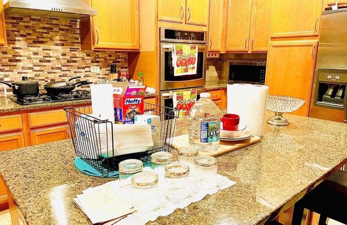 This spacious residence, crafted with beauty, is an ideal space for celebrating with family get togetherof 7 people .There is a fun pool table and Karan board downstairs for fun with infamily, a large 85 inch flat screen tv in the family room for entertainment and everything you need for a get together with a family o celebrate graduation birthday parties. PLEASE takeoff your shoes in front, no loud MUSIC after 8pm bcz of neighbors complaint