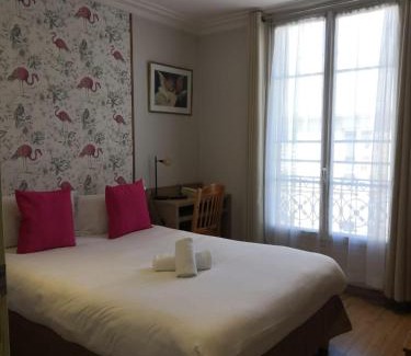 The Hotel Roi Rene is in the Batignolles district, in Paris’ 17th district. Just over a quarter mile from t Brochant Metro station, it offers rooms equipped with a private bathroom and a TV. All rooms at the Roi Rene are accessible by an elevator and simply decorated. Guests also have access to a laundry room on site. The hotel provides a continental breakfast daily, which can be delivered to guests’ rooms. A tour desk provides information about local sights and attractions. The Saturday market along the Boulevard des Batignolles is a 10-minute walk away, and an ideal place to buy organic products. The Sacre Coeur Basilica in the Montmartre district are 1 mile away.