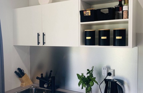 Our farm stay includes a small self contained kitchen with a small bar fridge, kitchen utensils, toaster, Nespresso coffee machine, microwave + small convection oven with cooktop , outdoor BBQ facilities & outside covered dining + campfire area.