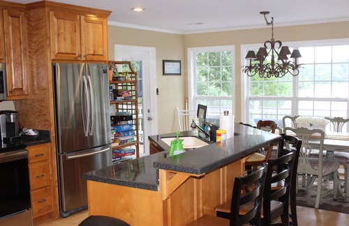 Our home has only 3 steps to the main floor and NO steps to bottom floor of the house when accessed from the lower porch. WE ARE PET FRIENDLY! The bottom floor is porcelain tile for easy care of pets. We request pets stay on the bottom floor or outside. We are located at the top of the inlet therefore little boat traffic or wakes. Perfect for Kayaking or Paddle Boarding. Two covered boat slips are available for guests with large swim platform and entertainment area. You can tie additional boats up to the large double dock. One slip has a "Hydro-Hoist" boat lift along Dual Jet Ski Drive On Ports available for your use. Direct TV service on 3 TVs in living room, master bedroom and downstairs recreation room. 75" big screen in the recreation room. High Speed Fiber Optic Internet Service. Don't miss the your favorite games while on vacation!
