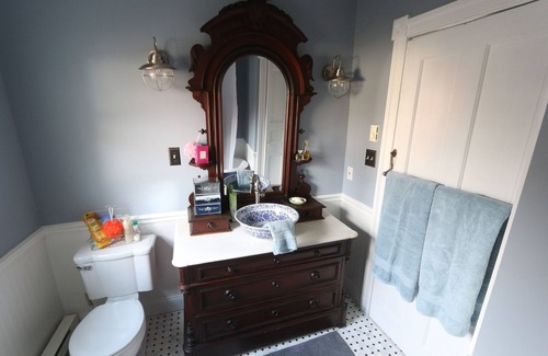 Beautifully restored and decorated large Victorian with six bedrooms and a large hot tub, in the heart of charming Hawley Pennsylvania. This home is ideal for couples looking for a quiet getaway, who enjoy antiques, Victorian era architecture and B&B type accommodations. The home is not suitable for children, however we will consider 1-2 children, on a case by case basis. For our guests that can’t do steps, we have one bedroom, bathroom and shower on the first floor, that can be accessed via the back door, which has no steps. There are 3 living/sitting rooms to spread out and relax in, a large kitchen and separate dining room, 6 bedrooms (2 of the six are adjoining on the third floor converted attic), and 3 bathrooms! The quaint village of Hawley which offers fine and casual dining, shopping, river walk trails, park, playground, library, fitness center and post office, is within walking distance of the home. The town offers numerous activities and festivals throughout the year. Lake Wallenpaupack is a short drive away and boast over 60 miles of shore line. Activities such as boating, fishing, water skiing, hiking and swimming, attract visitors from all over the tri-state area.