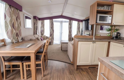Amenities: Gas heating, electric fire. Electric oven, gas hob, microwave, fridge/freezer. Smart TV with Sky, Netflix, 2 x TVs, TV with DVD player, WiFi, selection of DVDs. Fuel and power inc. in rent. Bed linen and towels inc. in rent. Roadside parking for 1 car, off-road parking for 1 car. Enclosed front garden decking with furniture. One well-behaved pet welcome. Sorry, no smoking. Shop 0.5 miles, pub 1.2 miles,, beach 0.8 miles, lake 1.1 miles. Note: Steps up to property. Note: On-site swimming pool available for customers.