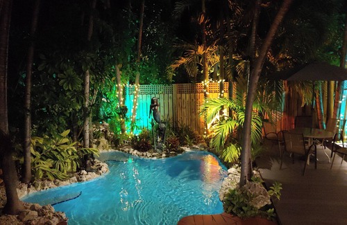 Just steps from the beach, your townhome is surrounded by lush gardens and palm trees. You can lounge on your private sundeck, next to your private heated lagoon-style pool, amidst lush palm trees in your private garden setting. There is also a private grilling area next to your pool. The common area is complete with hammock swings and a dining table under our mango tree, a shared grilling area and a putting green. Higgs Beach, which is just down the street, is also ideal for romantic evening walks for stargazers.