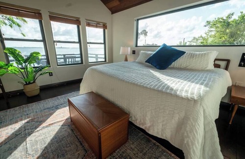 Enjoy this one-of-a-kind waterfront 4 Bedroom, 2.5 Bath home perfectly situated along the coast of Burnet Bay and access to Galveston Bay! Enjoy views of the San Jacinto Monument from almost every room, and the spectacular sunsets and cool breeze on the decks and balconies. Enjoy over 190 ft. of water frontage spend a day on the water boating, kayaking, or fishing, and finish with a glass of wine overlooking the views in your primary suite with a private balcony! Enjoy the home's unique Style.