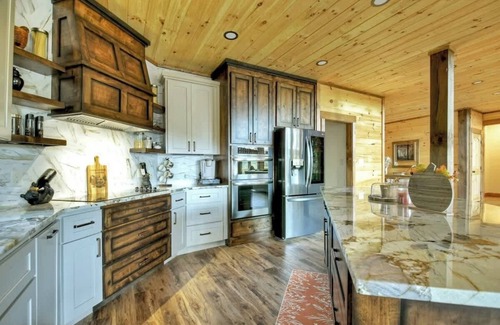 The fully equipped kitchen includes granite countertops, stainless steel appliances, a Keurig coffee maker, cookware, utensils, and a gas grill on the deck for the outdoor chef. Gather around the large dining table that seats 8 and enjoy mountain meals and memories.