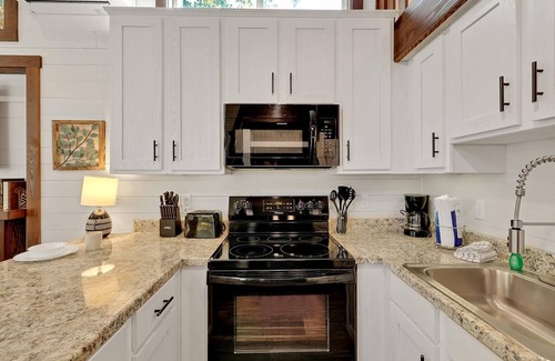 Welcome to Hiker's Hangout, a luxury tiny home nestled in the back of a quiet, gated neighborhood. Guests will have access to enjoy the community amenities that include private hiking trails, fire pit, and pavilion.