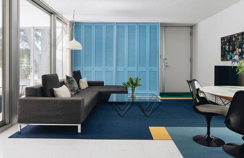 This distinguished National Registered Landmark, hailed as Dwell's 2017 #1 Prefab Home, stands as a testament to timeless design. Crafted by the visionary architect Emil Tessin, with interiors curated by the renowned Paul McCobb and Knoll, this mid-century modern time capsule offers a unique and immersive experience for architecture enthusiasts.