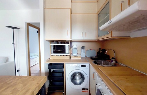 The kitchen is equipped with an oven, a stovetop, and a refrigerator, as well as cookware. Bathroom amenities include towels, toilet paper, and soap. And because there's access to laundry facilities, you can go a bit lighter on your packing.