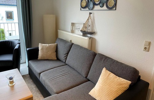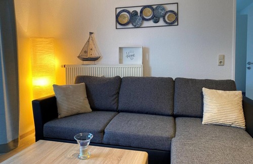 Apartment OG, about 70 square meters, 4 people, WiFi, non-smoking. Living-dining room with sofa set, satellite TV, dining area. Bedroom with double bed (180x200) and wardrobe. Bedroom with 2 single beds (90x200) and wardrobe. Open kitchen with dishwasher, microwave, ceramic hob and ovenDuschbad with washing machine. The shower room can be reached through the hallway and the bedroom with double bed. Additional guest toilet. Balcony, furnished with garden furniture for 4 persons. A reserved parking space, small lockable garden shed.