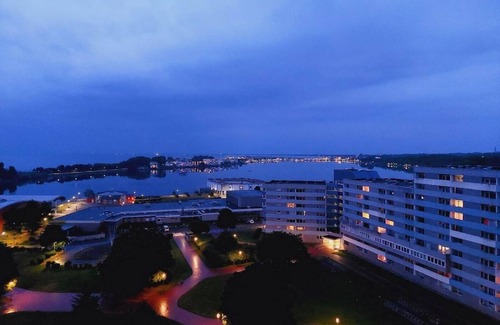 Apartment Sonnenaufgang: for 1-maximum 4 people, 45 sqm in the Ferienpark Heiligenhafen is located on the 11th floor with lift, furnished, covered balcony to the south-east side with a fantastic view of the lake / marina and the Baltic Sea!!!