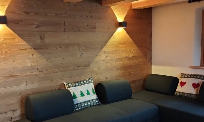 Overlooking the Alps, the holiday apartment "Panoramico" is situated in La Salle and creates an unforgettable setting for your getaway. The 50 m² property consists of a living room with 2 sofa beds for one person each, a well-equipped kitchen, 1 bedroom, and 1 bathroom, and can accommodate 4 people. Additional amenities include high-speed Wi-Fi (suitable for video calls), a TV, a dishwasher, and a washing machine. A baby cot and a high chair are also available.
