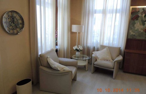 The apartment with its high ceilings and elegant furniture exudes luxurious comfort. You live on 220 square meters on the ground floor of a historic merchant's house with a park-like garden and view of the harbor and the HafenCity. On the veranda you sit at the dining table and enjoy the view of the garden. The garden bedroom is flooded with light in the morning. The interior is modern and corresponds well with the elaborately paneled walls, the light leather trimmings and softly falling curtains. Dogs are welcome for a fee of EUR 30.00 (flat rate). Deposit: EUR 150.00