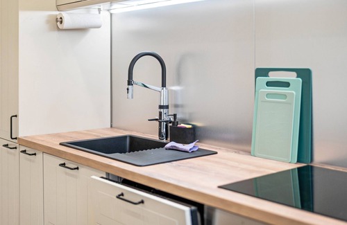 One bedroom and a cosy sofa bed in the living area ensure restful nights. The fully equipped kitchen includes a dishwasher. The modern bathroom features a large shower and a washer-dryer. Wi-Fi and TV are also available – everything you need for relaxing holidays.