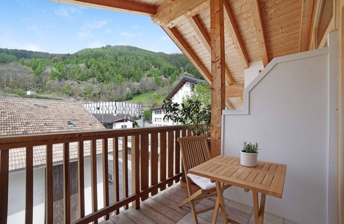 The highlight of the apartment is a private balcony where you can enjoy the views of the valley with the mountains.